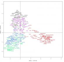 The lexical field is dominated by Islamism, fundamentalism and creates a network of guilt by association: "communautarisme", "immigration", "étrangère" are linked by lexical proximity to the pejorative "radical", "terroriste", "fundamentaliste", "djhiadiste".
